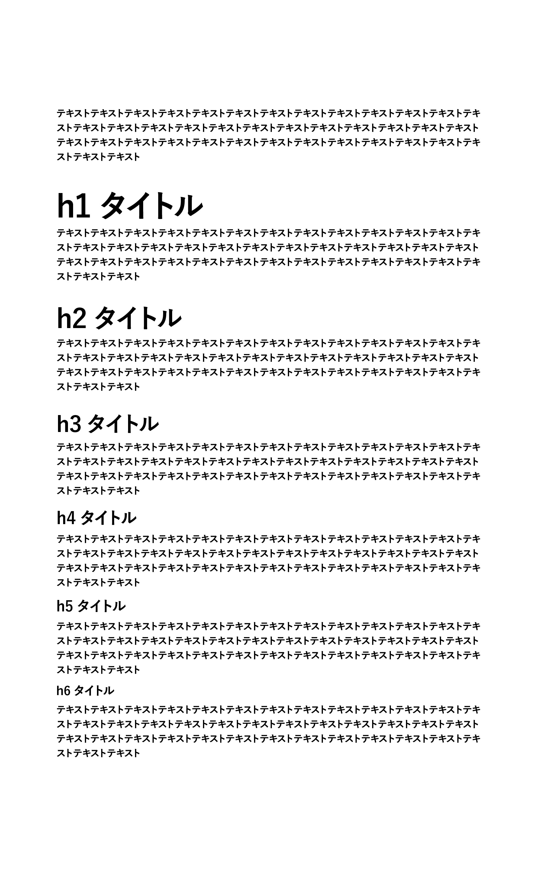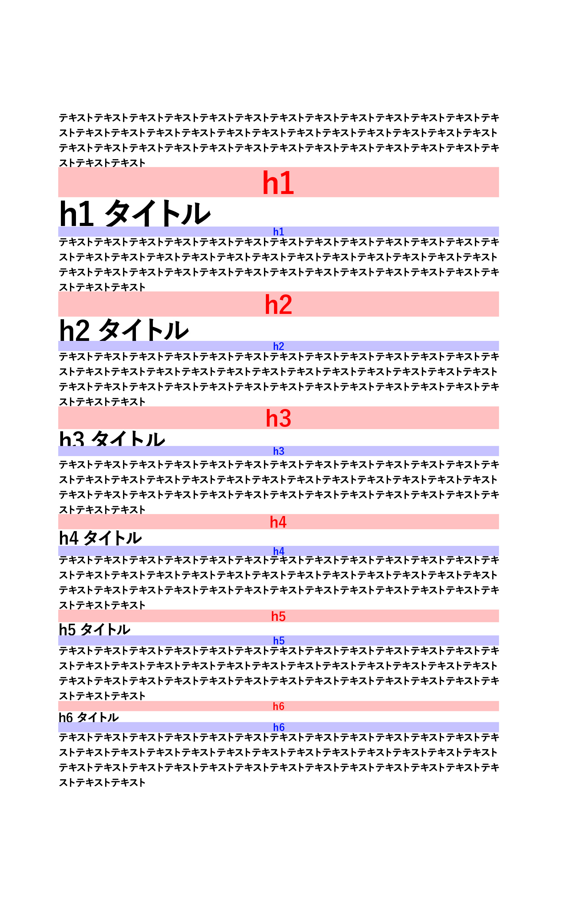 ただ、これをきちんと守ろうとするとh1のタイトルが大きく見えてしまうため、使用シーンに合わせて、 h4 , h5 , h6 のサイズを同じ、または近い数値にすることも多いです。
