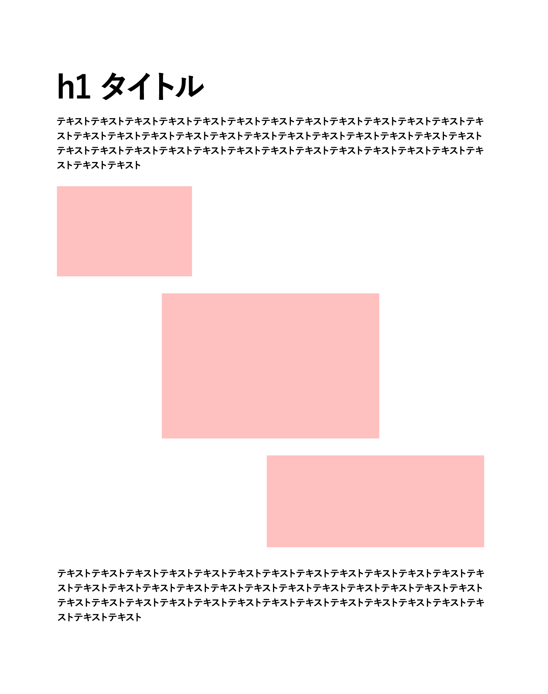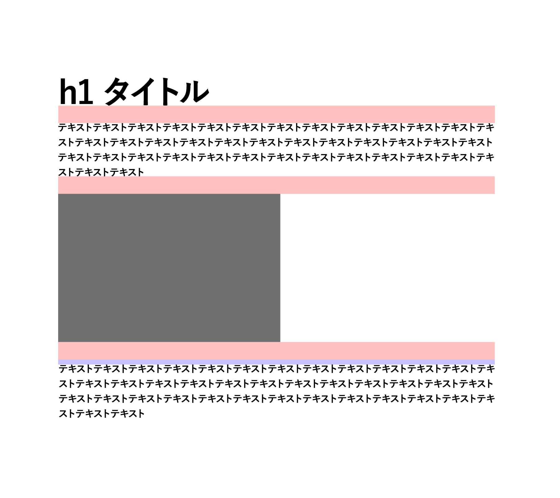 ポイントは h2 や p 、 figure など全ての要素が兄弟要素として並ぶことです。つまりHTMLの入れ子構造を使ったレイアウト(例:特定のブロックだけまとめて囲む)ができません。この仕様のため、CSS側で「どんな順番で要素が並んでも整って見える」ルール設計が求められます。